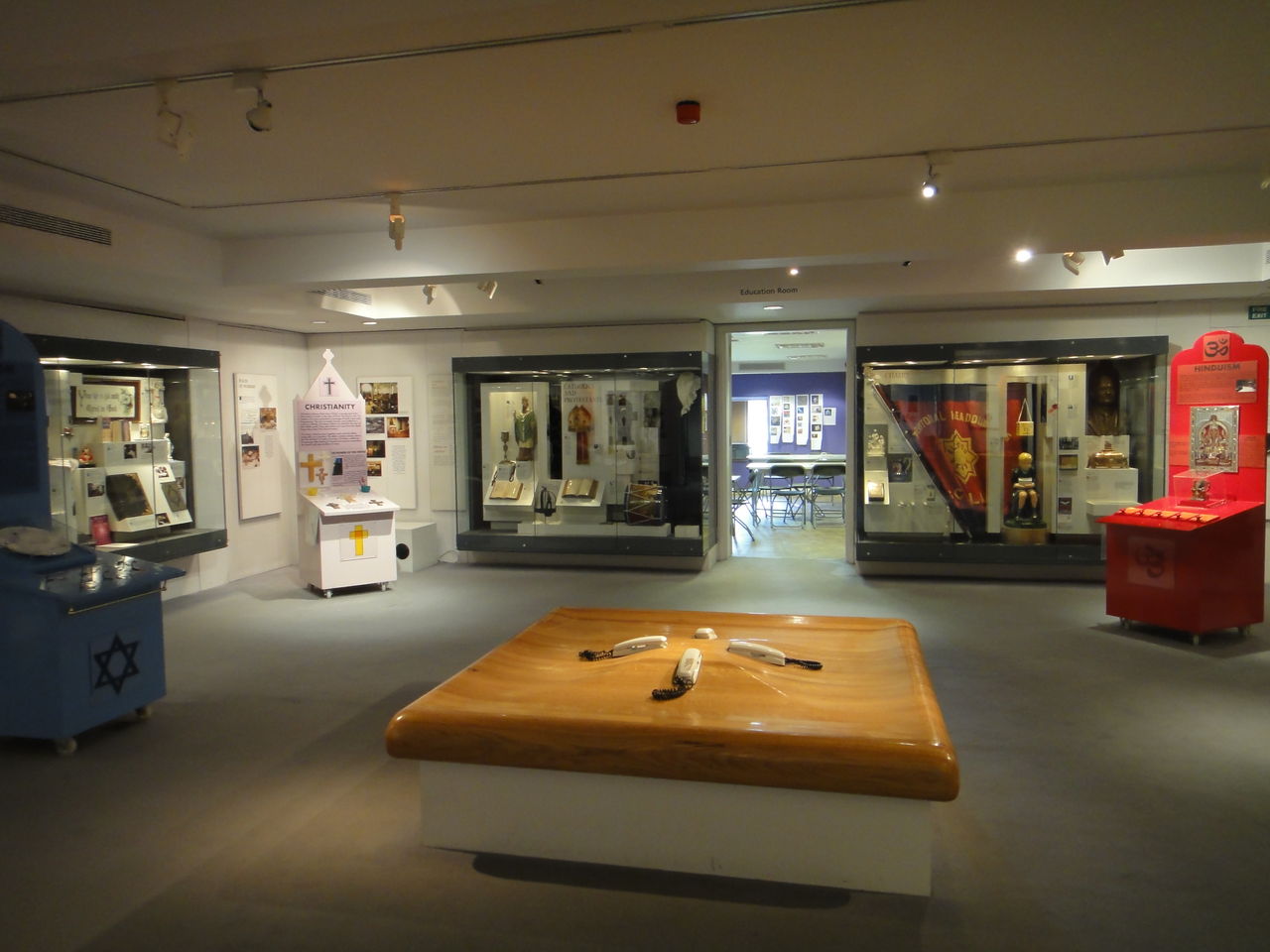 クイズや宗教グッズに触れられる。