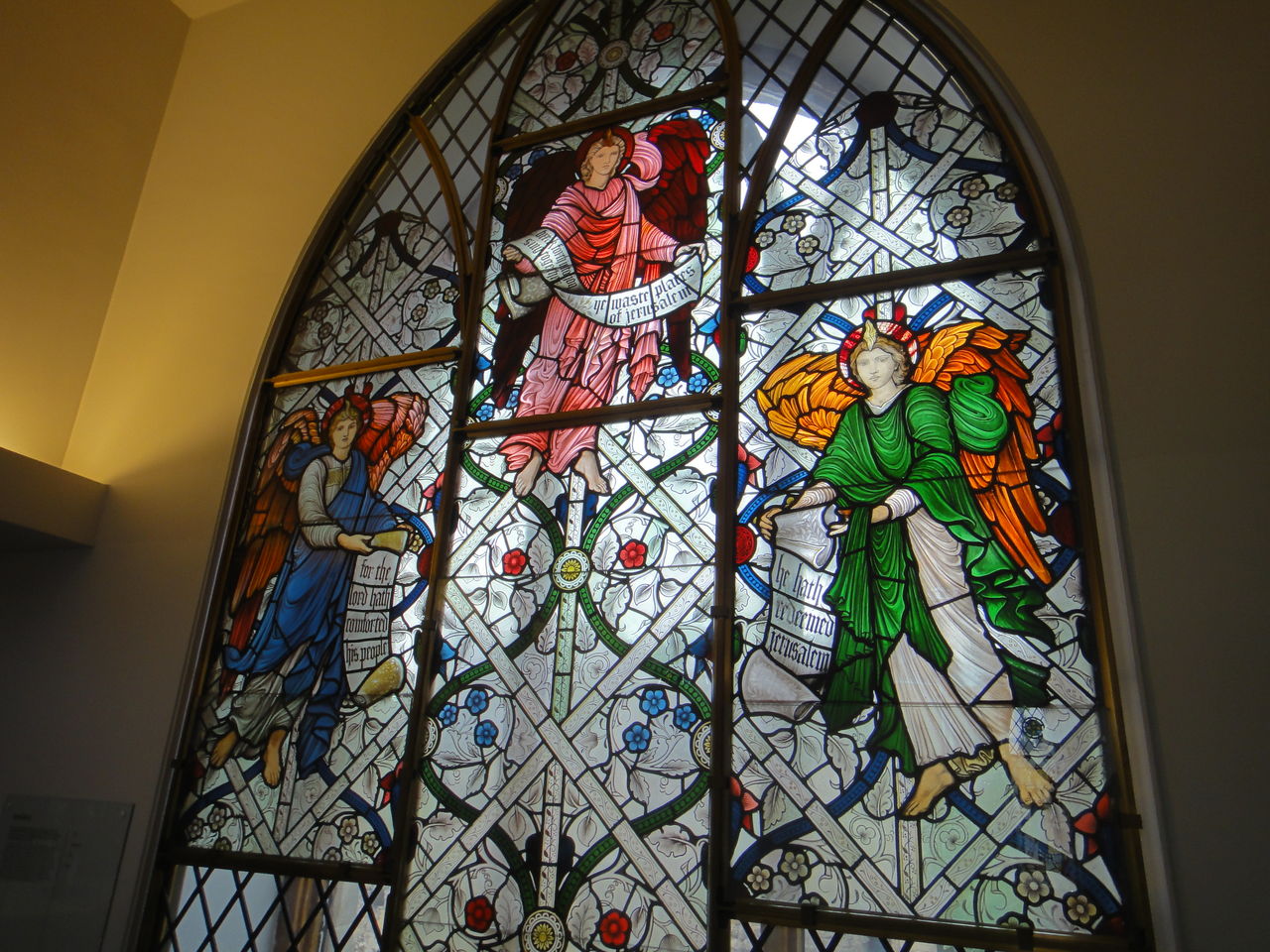ラファエル前派の様式のステンドグラス。